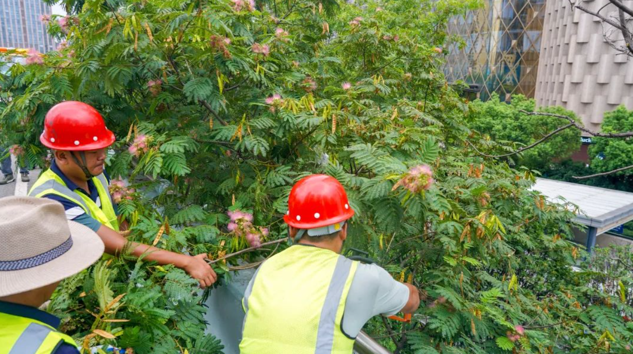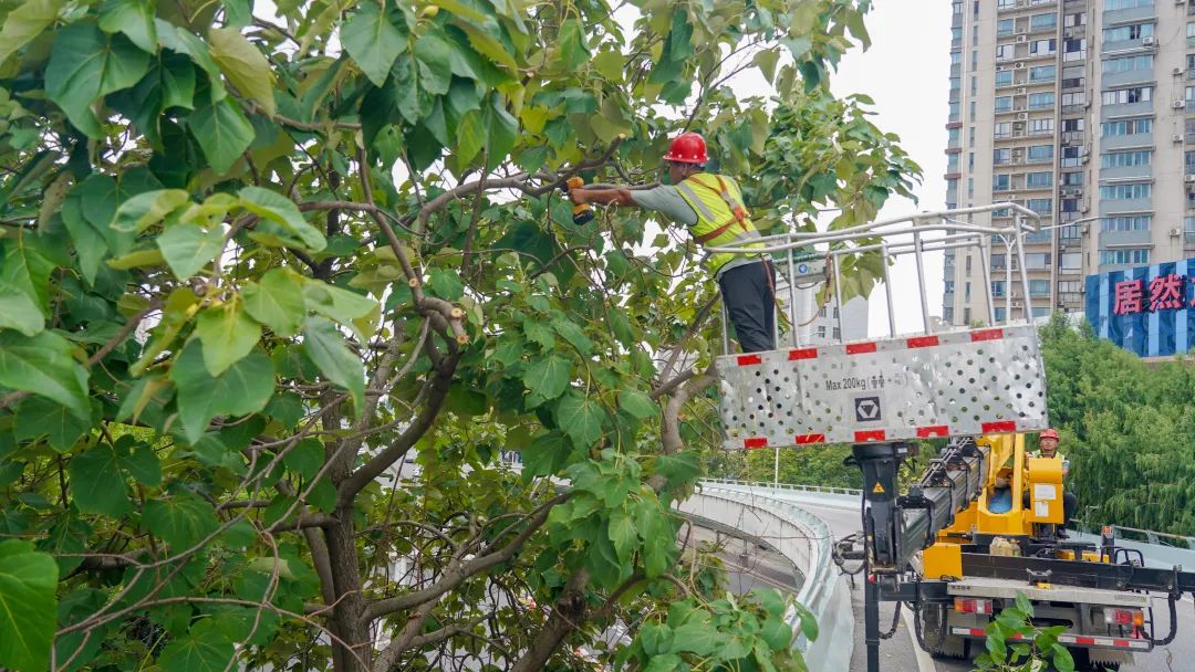 该单位道路养护部负责人徐晶说,按照交管部门的要求,修剪树木要避开早晚交通高峰,所以修剪要速战速决。 市园林和林业局绿化养护处相关负责人介绍,道路树木遮挡交通设施和匝道的清理,融入了各区的日常绿化养护,每发现一处,就清理一处。今年春夏之交雨水较多,气温适宜,树木生长旺盛,街头树木遮挡现象多发。今年5月,市园林和林业局启动全市第一轮树木遮挡清理专项行动。 截至目前,根据市民反映和各区园林部门排查,累计查出树木遮挡现象1376处,修剪树木3352株。其中,遮挡交通信号灯现象最多,有897处,已修剪树木2135株。其次为遮挡高架立交匝道,查出52处,修剪树木726株。该专项清理行动实行动态清零、随查随处