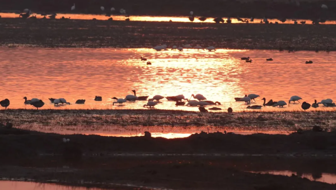 * 珍稀濒危鸟类卷羽鹈鹕时隔6年再度现身武汉蔡甸沉湖湿地 魏斌 摄微波荡漾的湖面,成群结队的鸟儿,武汉市蔡甸区沉湖湿地自然保护区内,一派祥和静谧。“鸬鹚等冬候鸟陆续从北方飞来,这里已成为鸟的乐园。”沉湖湿地自然保护区管理局治安科科长冯江自豪地说。沉湖湿地是武汉市唯一的国际重要湿地。武汉境内江河纵横、是“百湖之城”,湿地面积超过23万公顷,湿地率高达27%。近年来,武汉不断推进湿地自然保护区、湿地公园、森林公园等自然保护地建设,累计建成各类自然保护地26处。武汉位于东亚—澳大利西亚候鸟迁徙路线上,既是留鸟的家园,也是候鸟的重要驿站。