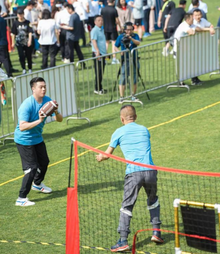 比赛分为“稳扎稳打、突飞猛进、抢占先机、谱写华章”四个项目。整场比赛融合了篮球、棒球、跳绳、跑步和深受年轻人喜爱的飞盘、橄榄球等运动,集中考验了各参赛队伍的身体素质和团结协作能力。在“稳扎稳打”项目中,队员们精准投篮;“突飞猛进”中,男女队员合作顺利;“抢占先机”中,双色棋盘展现智力比拼;“谱写华章”中,留下“不忘初心”的字迹。每一个比赛项目都需要队员们齐心协力共同完成,这不但是智慧和体力的角逐,更是团结和协作的比拼。从运动会开始到结束,队员们的表现都牵动着在场观众的心,加油声、欢呼声、呐喊声、喝彩声、欢笑声此起彼伏,现场热闹非凡。