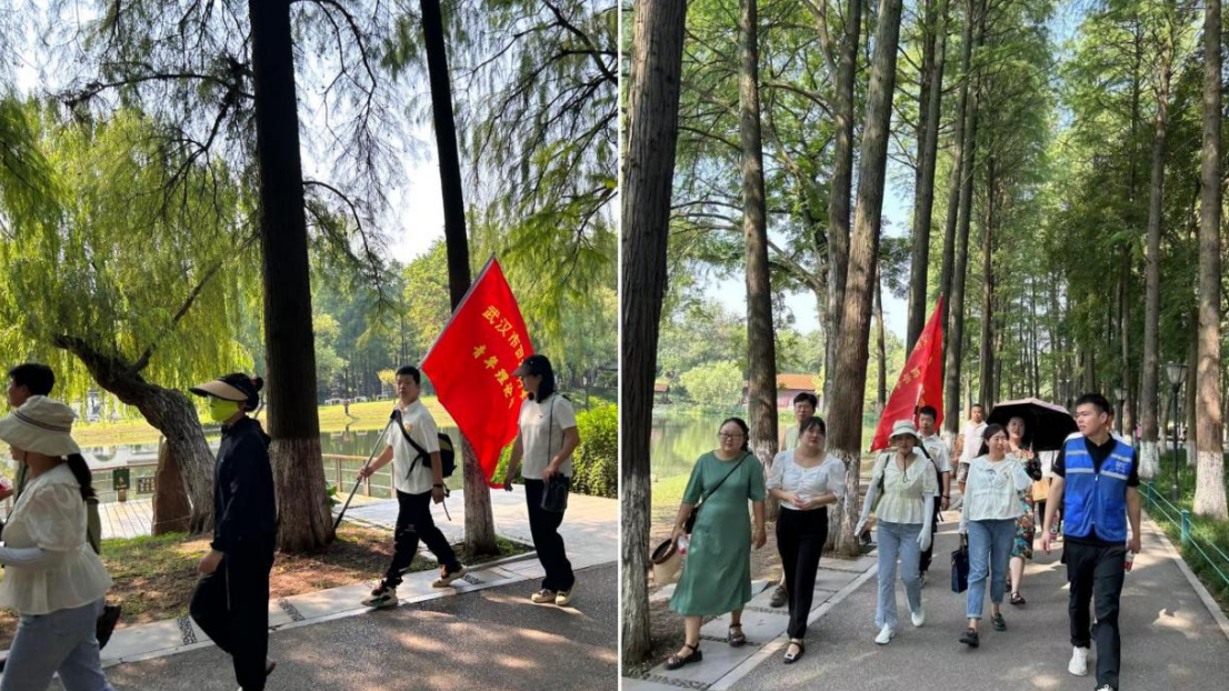 简单的座谈交流后,学习小组成员们迎着骄阳出发,在解放公园里实地踏勘、研讨交流、发现问题、解决问题。