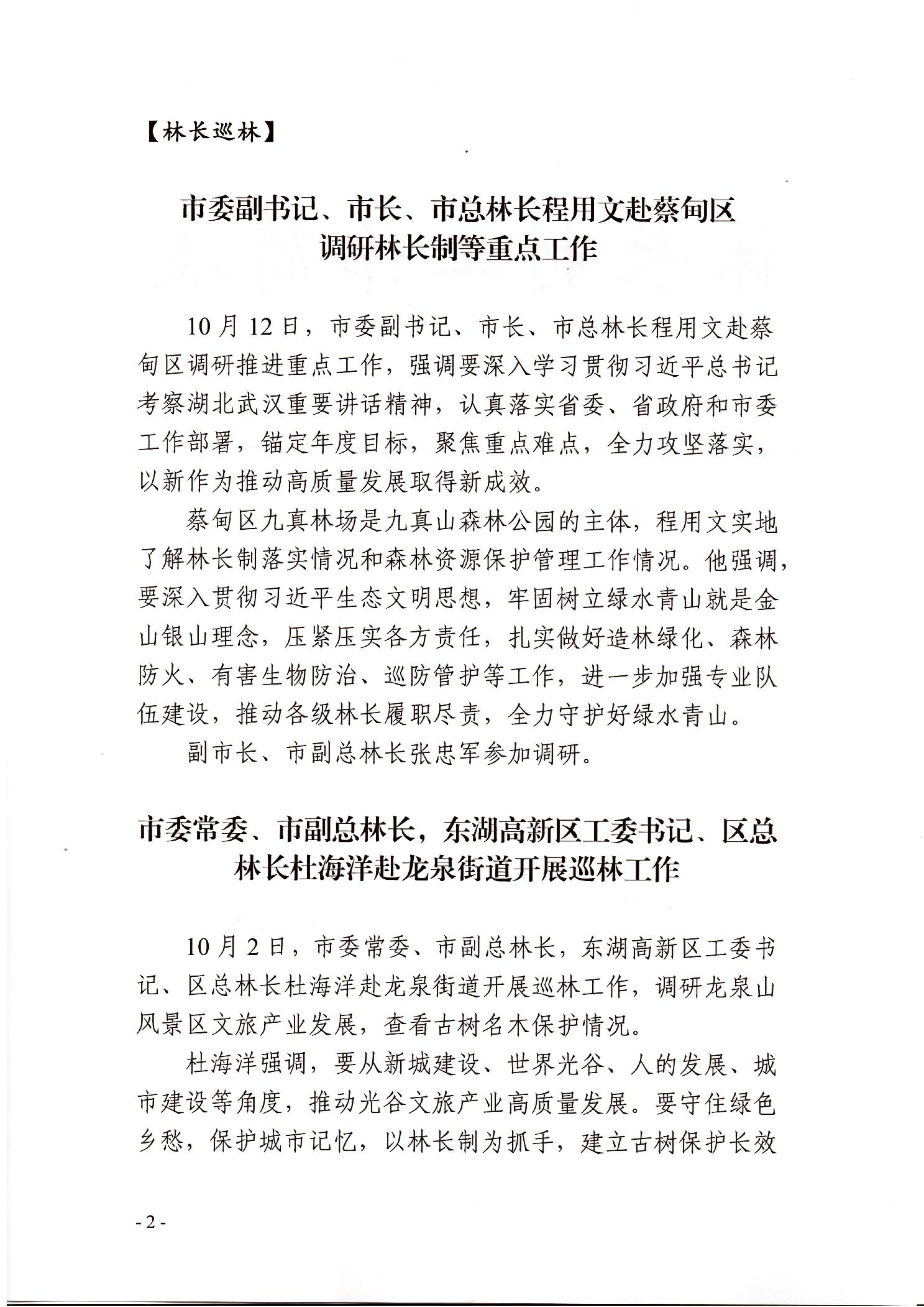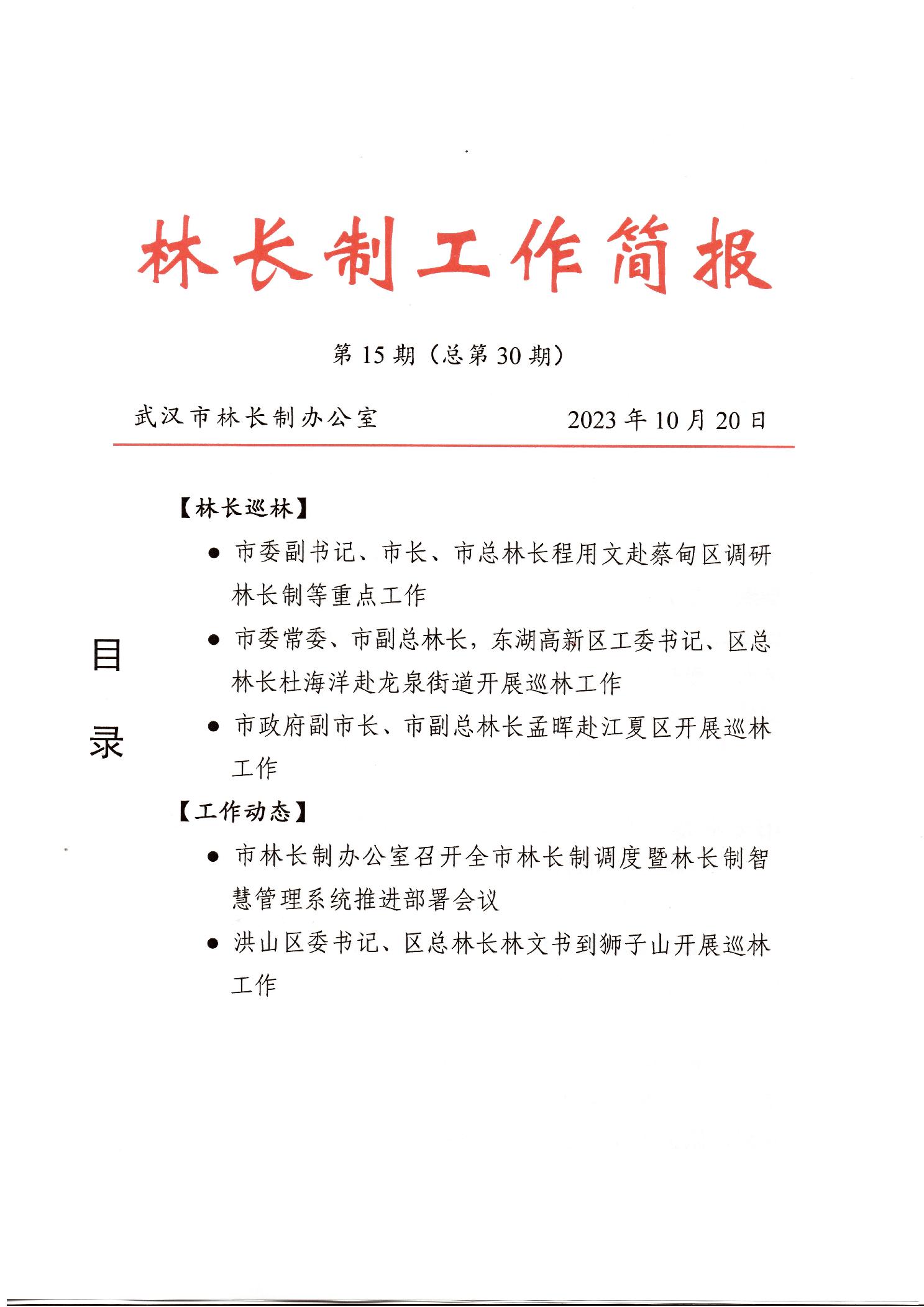 武汉市林长制工作简报第15期(总第30期)