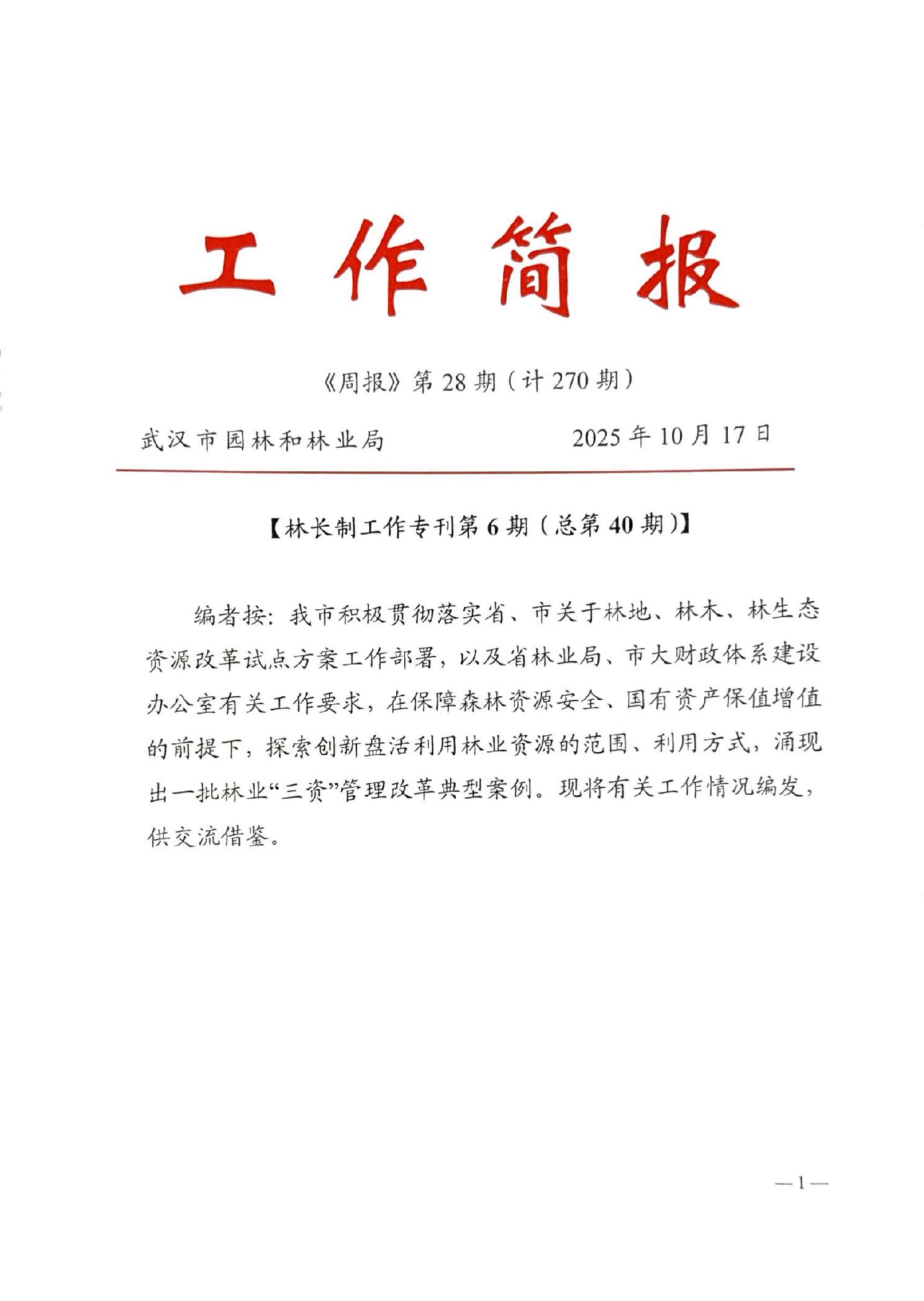 武汉市园林和林业局周报2025年第28期(计270期)林长制工作专刊第6期(总第40期)