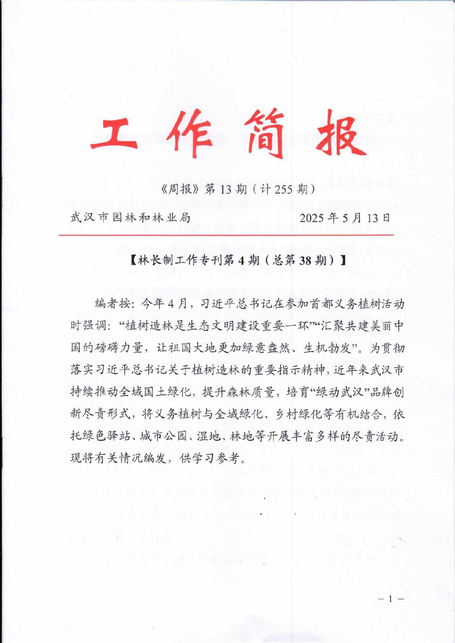 武汉市园林和林业局周报2025年第13期(计255期)林长制工作专刊第4期(总第38期)